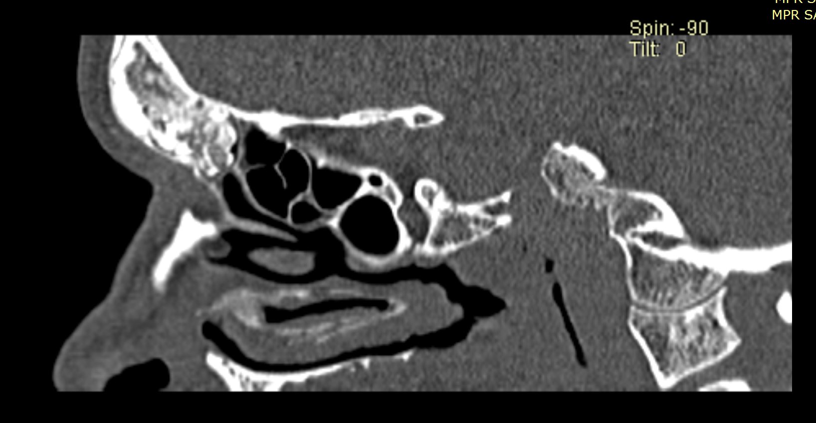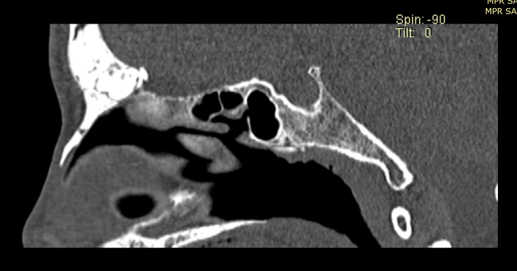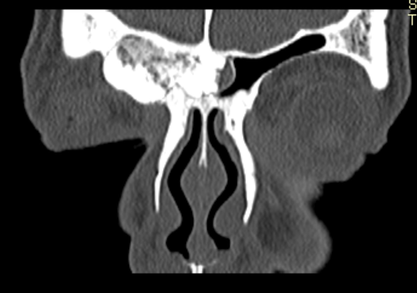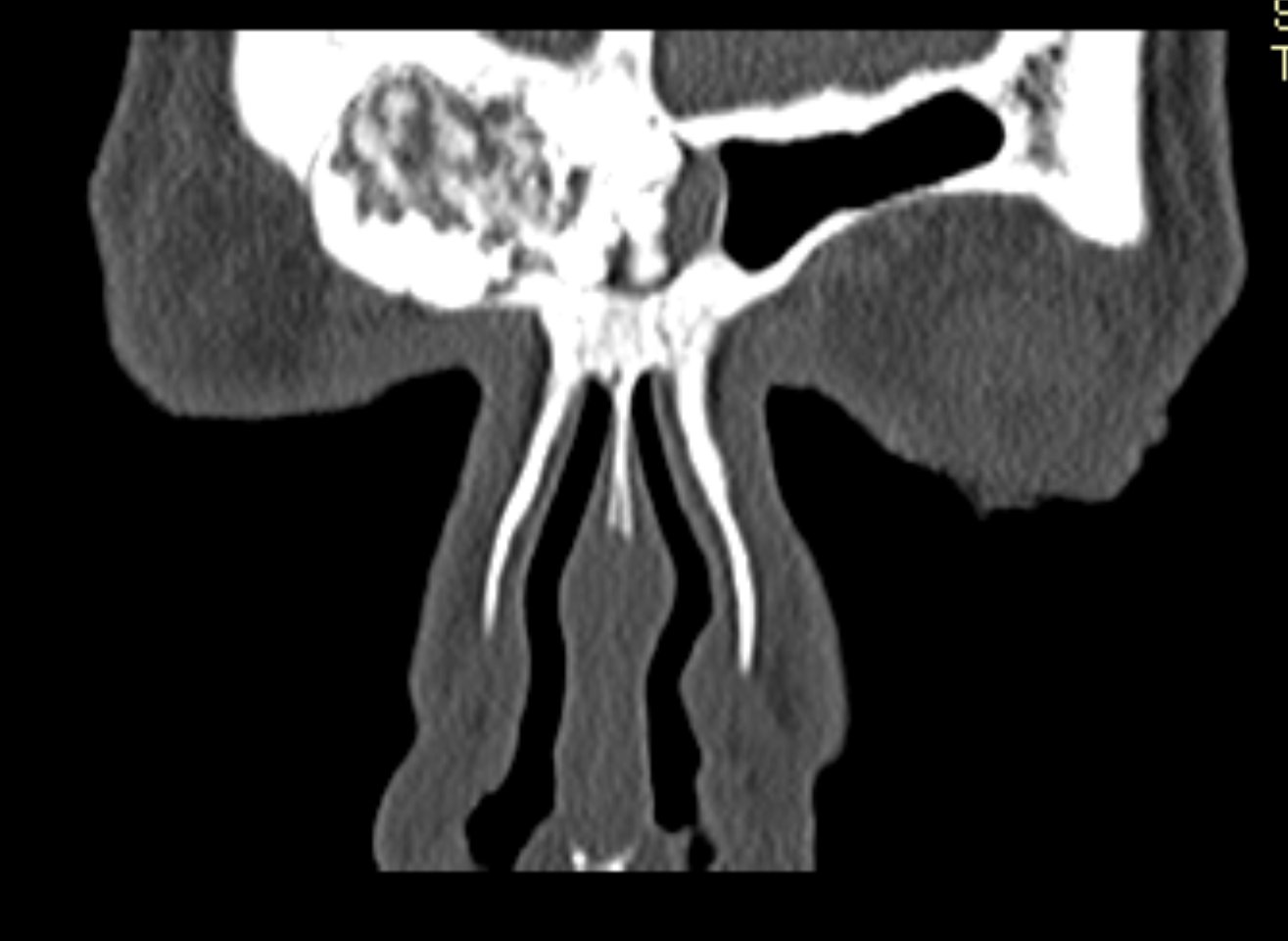 Ziua 1 postoperator, pacienta efectuează CT sinusuri paranazale de control care certifică ablația completă a formațiunii.